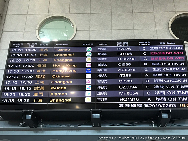 大家可以看到有長榮航空也有吉祥航空都同一個報到櫃台,同一個時間