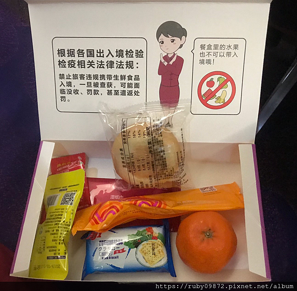 裡面還貼心宣導,機上的餐食水果不可帶入境 (未開封的可以,例如餅乾
