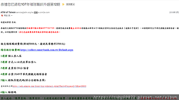 依照MAIL的指示操作完成即可 (也就是先匯款再把收據,但須注意繳費的姓名是不是自己的+報名表掛號寄回