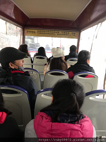 天氣真的很冷,園區電瓶車很貼心有在電瓶車外放個塑膠罩子,挺暖和的