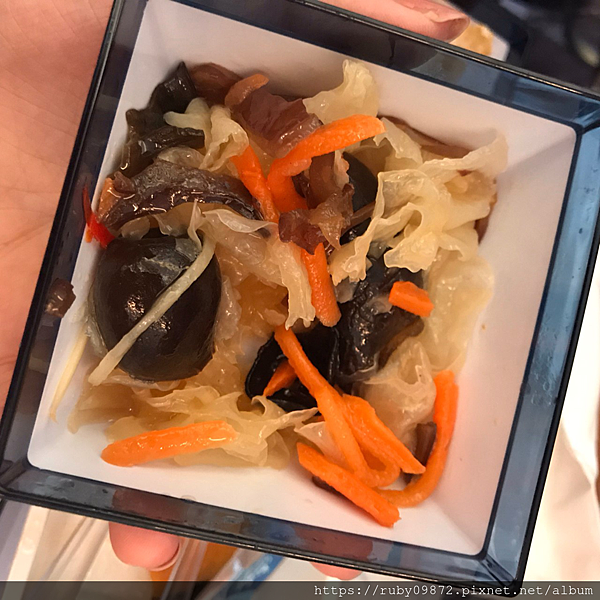 配菜是很清爽的白木耳、黑木耳、紅蘿蔔,吃起來微酸很開胃 !