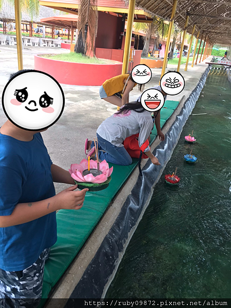 接著到跟水神拜一下,許個願就可以放水燈啦 !