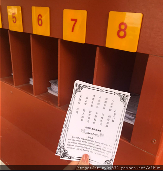 旁邊有籤詩,找到自己號碼的盒子拿取籤詩