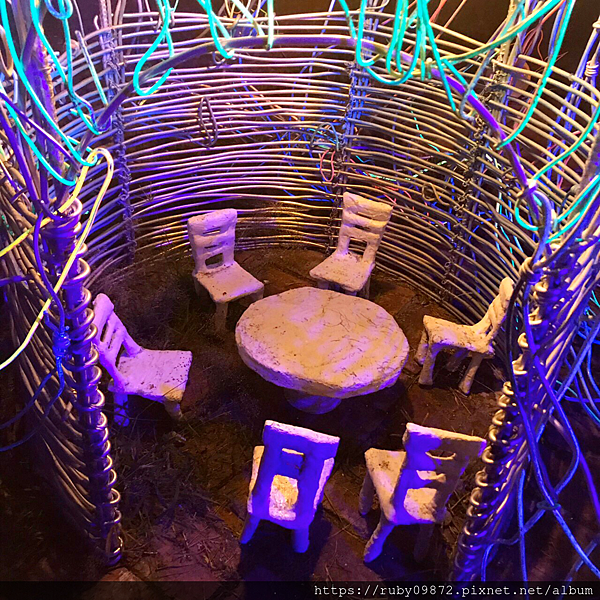 樹洞裡的光源,仔細蹲下來看還能看到迷你小桌子圍一圈