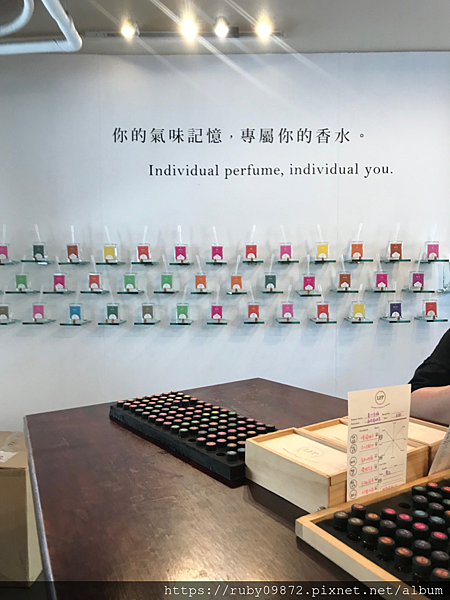 走進去空間不大,剛好有另一組客人正在製作香水,有一大片的香調牆