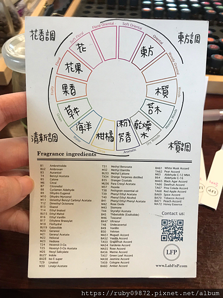 以及桌面香調卡,可以用桌上的編號去對應是屬於哪種香調及名稱