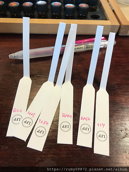 我挑了這六種,調香師會請你寫下來,再對應香味沾取在紙上