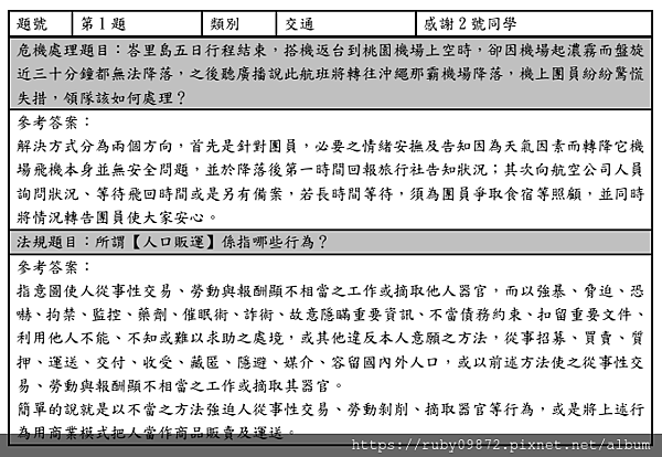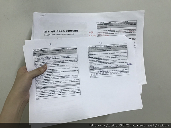 口試部分我們以分組的方式3人1組,配1題 (含有危機處理、法規題目),共40題。