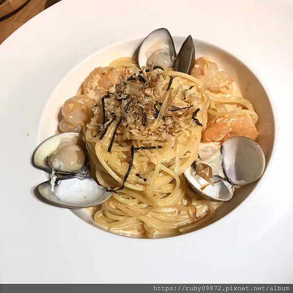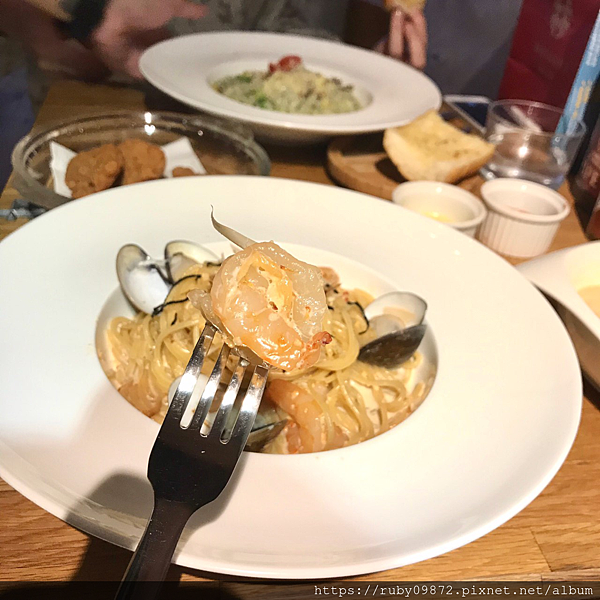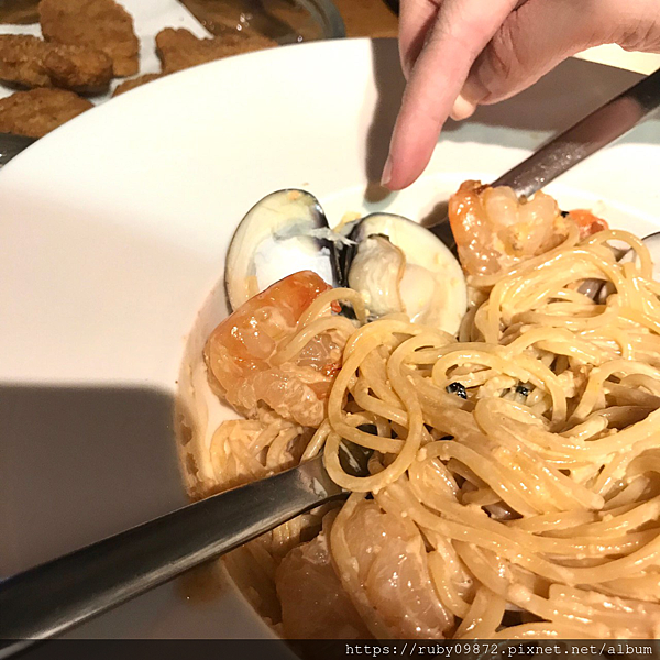 這天來吃又是吃明太子奶油蝦球義大利麵