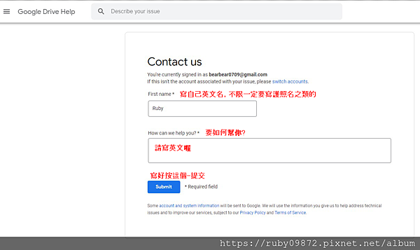 大概寫一下發生什麼事情,以及希望GOOGLE如何幫你