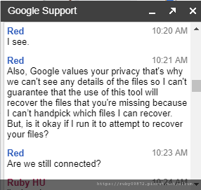 找到了這個 與 Google 雲端硬碟支援小組聯絡