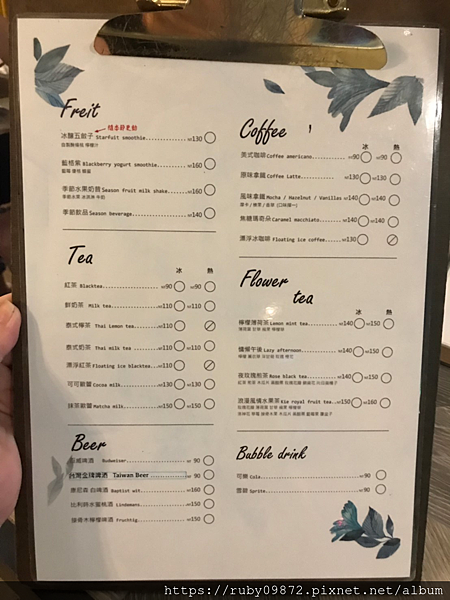菜單資訊 (現在好像蠻多店家都使用這種夾式的菜單