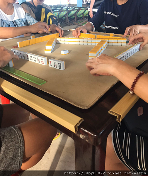 這裡還有提供麻將桌、跳棋、撲克牌、小朋友堆沙堡的玩具